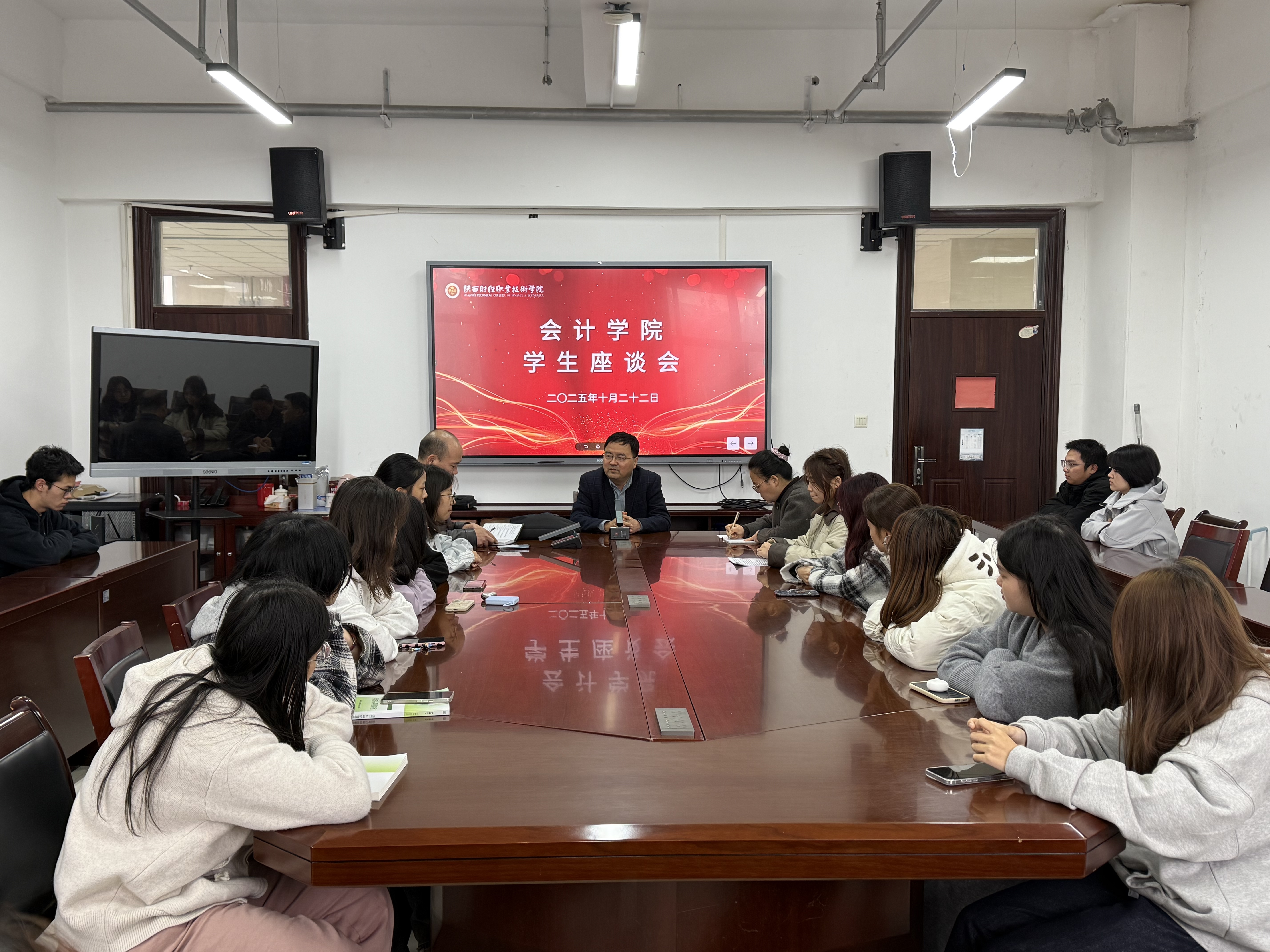 为深入践行“以生为本”的教育理念,畅通师生沟通机制,推动学校服务与管理水平提升,10月22日上午,学校党委副书记、纪委书记殷兴光、纪委监督检查室主任姚七栋与会计学院2025级学生代表召开座谈会,围绕学业发展、生活服务与职业规划等方面进行了深入交流。