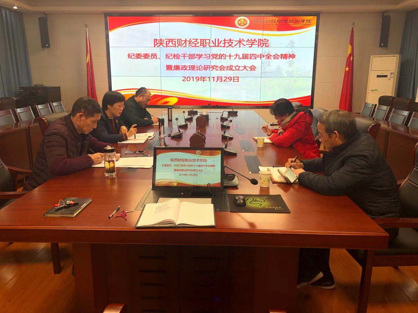 11月29日下午,学院纪委在办公楼四楼会议室召开纪委委员、纪检干部学习党的十九届四中全会精神暨廉政理论研究会成立大会。学院纪委委员及纪检干部参加了会议,党委副书记兼纪委书记刘文青主持会议。