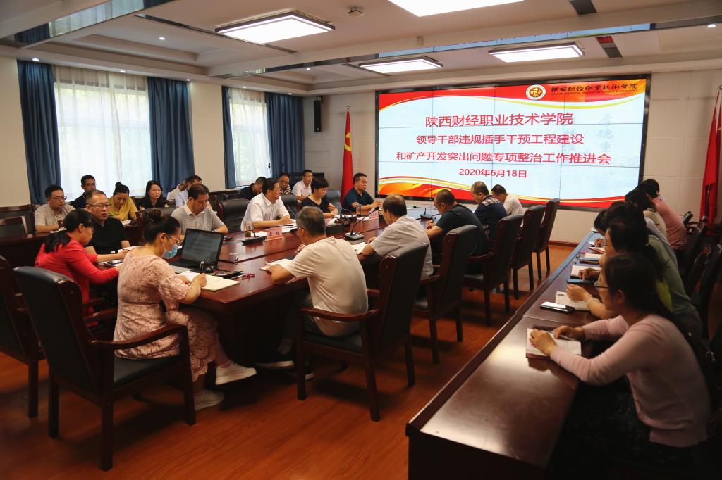 6月18日下午,我院在办公楼四楼会议室召开领导干部违规插手干预工程建设和矿产开发突出问题专项整治工作推进会,会议由学院党委副书记兼纪委书记刘文青主持。学院党委书记张志华及党委委员、副院长雷旭出席会议,学院党政办、党委组织部、党委宣传部、人事处、思政部部门负责人及纪委委员、纪检委员、四个二级学院党总支书记参加会议。