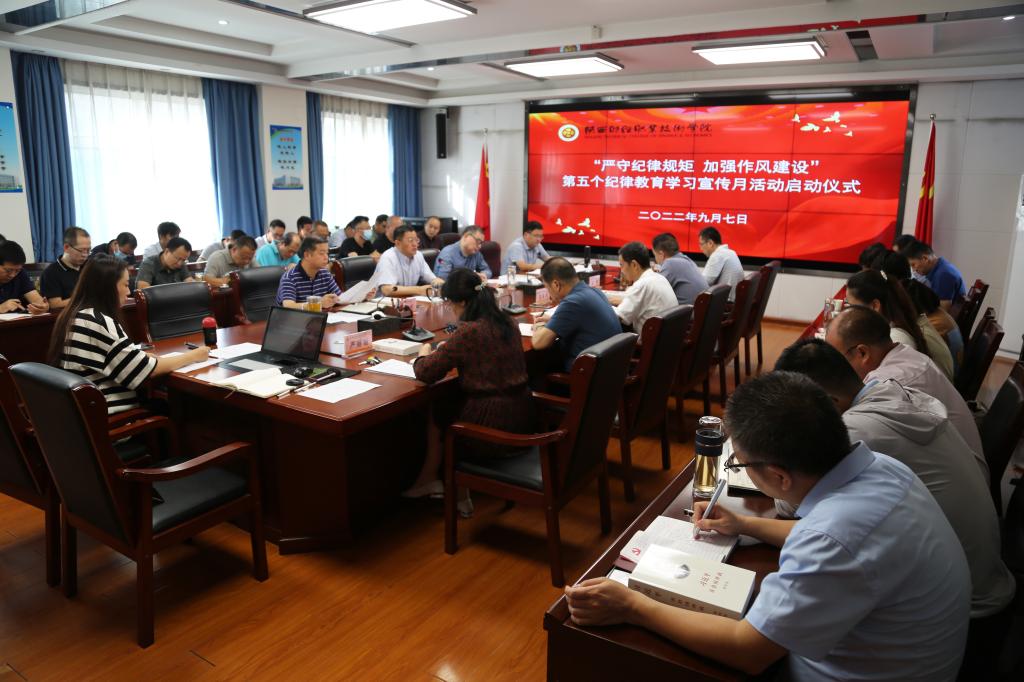 9月7日上午9:40,纪委在办公楼四楼会议室举办了第五个纪律教育学习宣传月活动启动仪式暨警示教育。校领导班子成员出席会议,全体处级以上干部共计40余人参加会议。党委副书记兼纪委书记殷兴光主持会议。