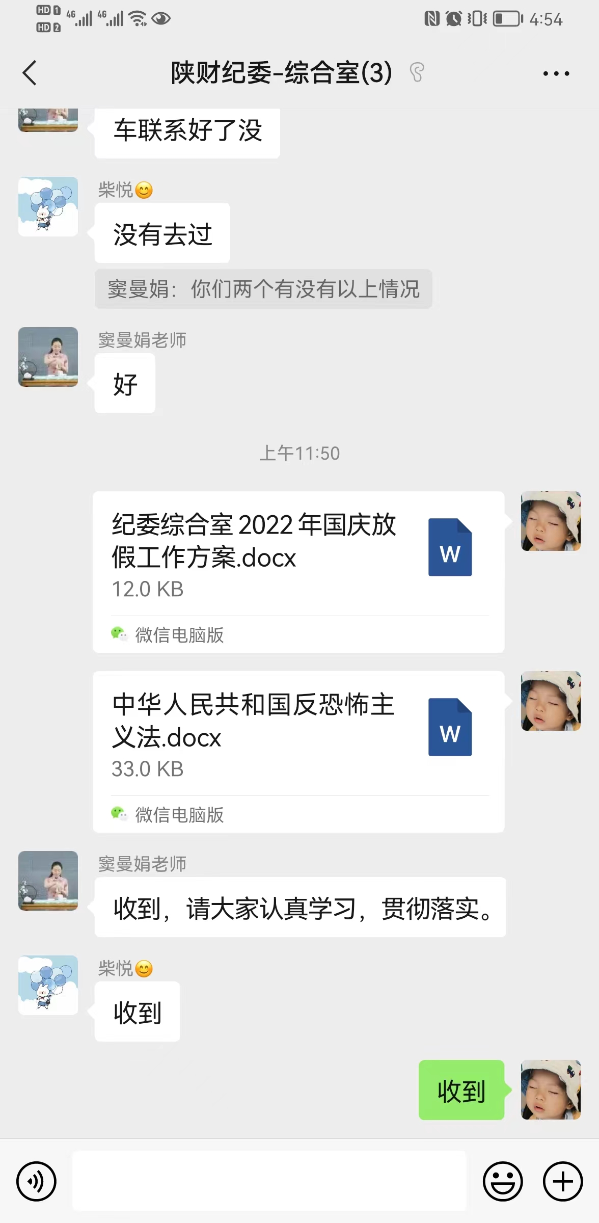 为普及反恐怖主义法等相关法律法规和反恐、防恐知识,纪委综合室利用工作微信群,转发《中华人民共和国反恐怖主义法》等一系列法律政策,大家通过自主学习,交流心得等方式,提高了对恐怖活动及其危害性的认识。通过组织观看新疆反恐系列纪录片,增强了自身反恐防范意识。