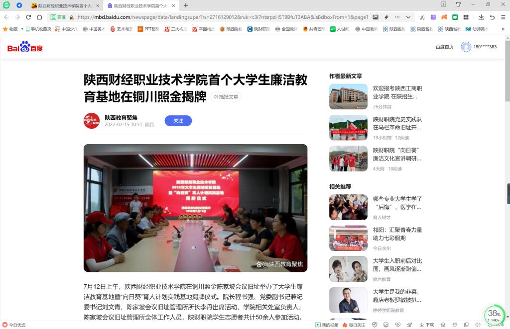 【百度网】报道我校首个大学生廉洁教育基地在铜川照金揭牌