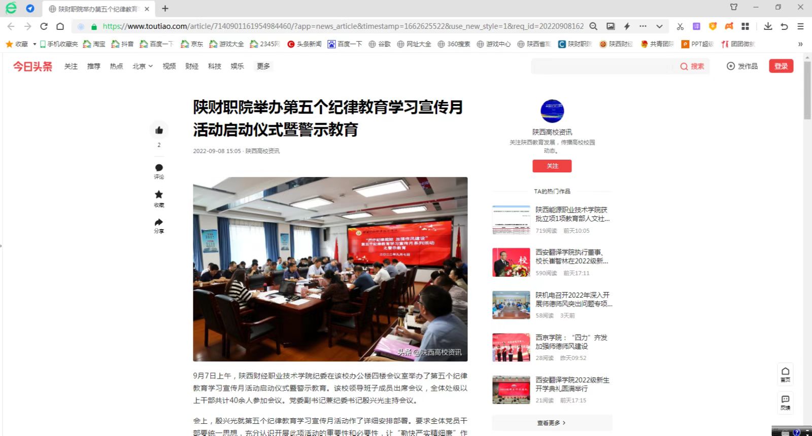 【今日头条】报道我校举办第五个纪律教育学习宣传月活动启动仪式暨警示教育