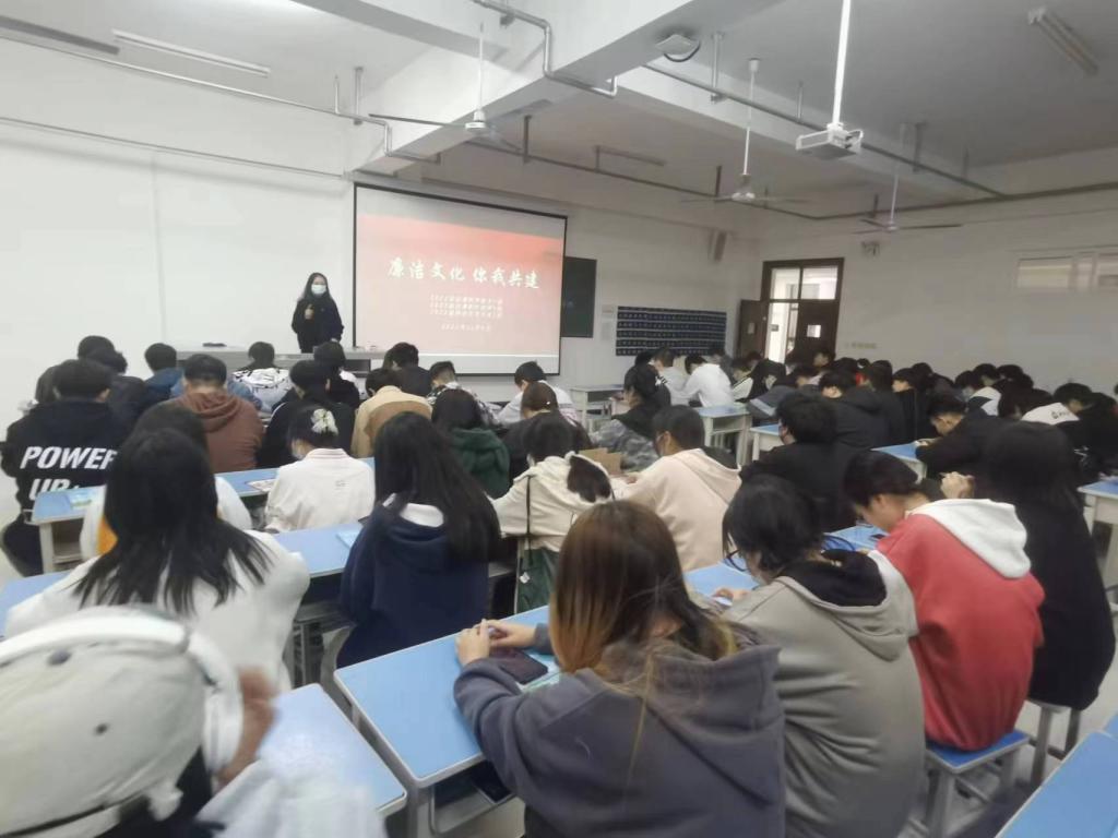 为认真贯彻《关于推进“清廉陕财”建设的实施方案》的文件要求,坚定不移推进全面从严治党,持续打好党风廉政建设和反腐败斗争攻坚战,推动“清廉陕财”建设,把握教育系统廉政文化建设的特点,11月6日19时,大数据与人工智能学院2021级和2022级全体学生在教学楼五楼,召开了以“廉洁文化教育”为主题的班会。此次班会旨在培养学生正确、积极、健康的理想信念、树立道德观念、增强法律意识和社会责任,强化学生干净做人、规范做事、遵纪守法的自觉性,从而促进我院的和谐健康发展。