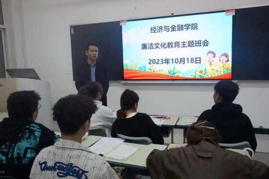 “清正方能聚人,律己方能服人;廉洁方能带人,无私方能感人”。为增强廉洁文化意识,推动清廉校园建设,营造风清气正的育人环境。10月18日晚,经济与金融学院在2023级新生班级中组织开展廉洁文化教育主题班会。