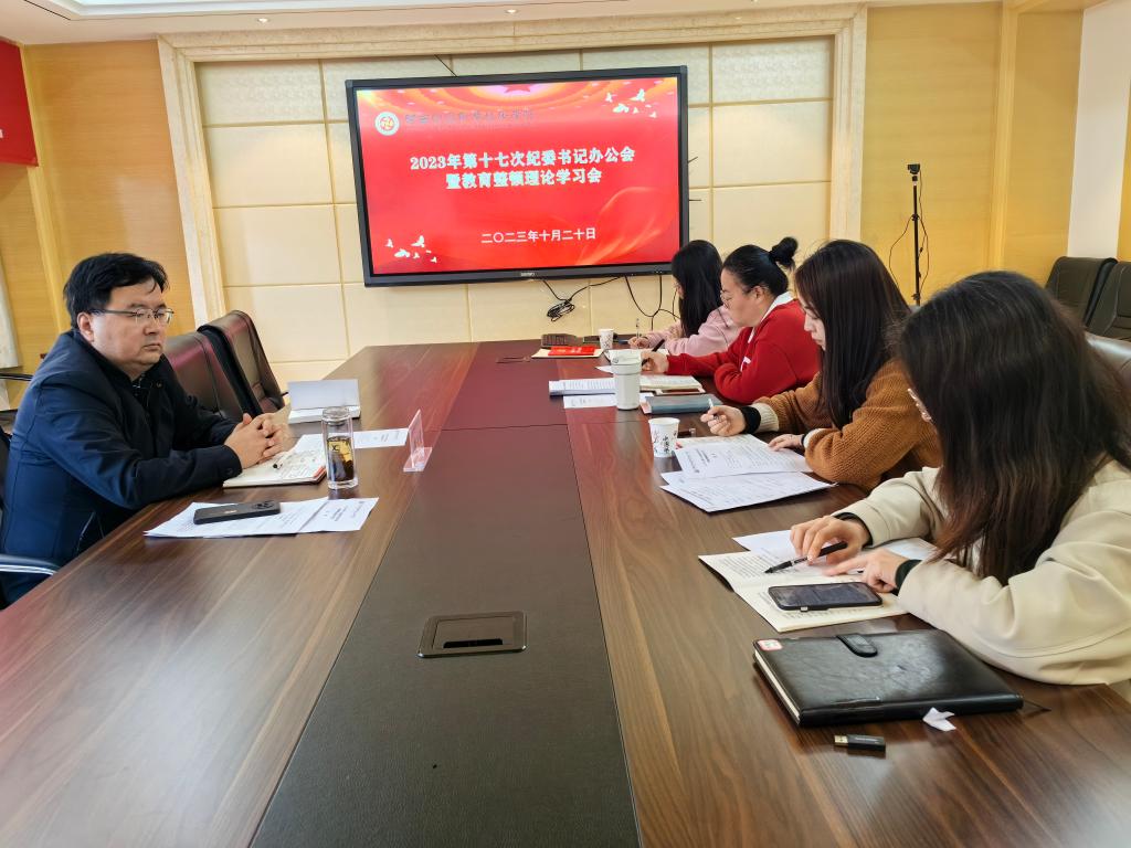 10月20日下午2:30,纪委综合室在实训楼二楼会议室召开2023年第十七次纪委书记办公会暨教育整顿理论学习会。党委副书记、纪委书记殷兴光主持会议,专职纪检干部参加会议。